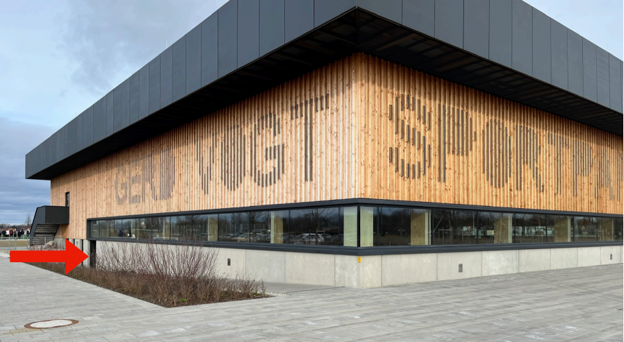 Sollte die Tür verschlossen sein, einfach an der Scheibe klopfen, dann kommt jemand um dich hereinzulassen. Parkplätze sowie Fahrradständer befinden sich vor der Halle.